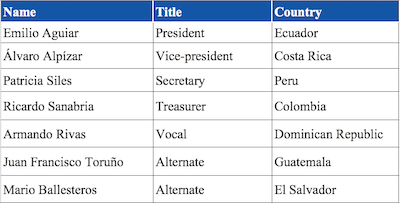 New members of the Board of Directors of WBO. From left to right: Juan Francisco Toruño – Alternate, Armando Rivas- Vocal, Ricardo Sanabria-Treasurer, Álvaro Alpízar-Vice-president, Emilio Aguiar-President, Patricia Siles-Secretary and Mario Ballesteros-Alternate.
